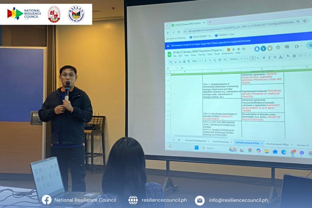 The Transform Phase, as the final stage, addresses the question: “How can we change existing systems to achieve resilience?” During this activity, the Steering Committee, with the help of the Bataan Peninsula State University, contextualized the indicators to ensure alignment with the Bataan Provincial Offices.